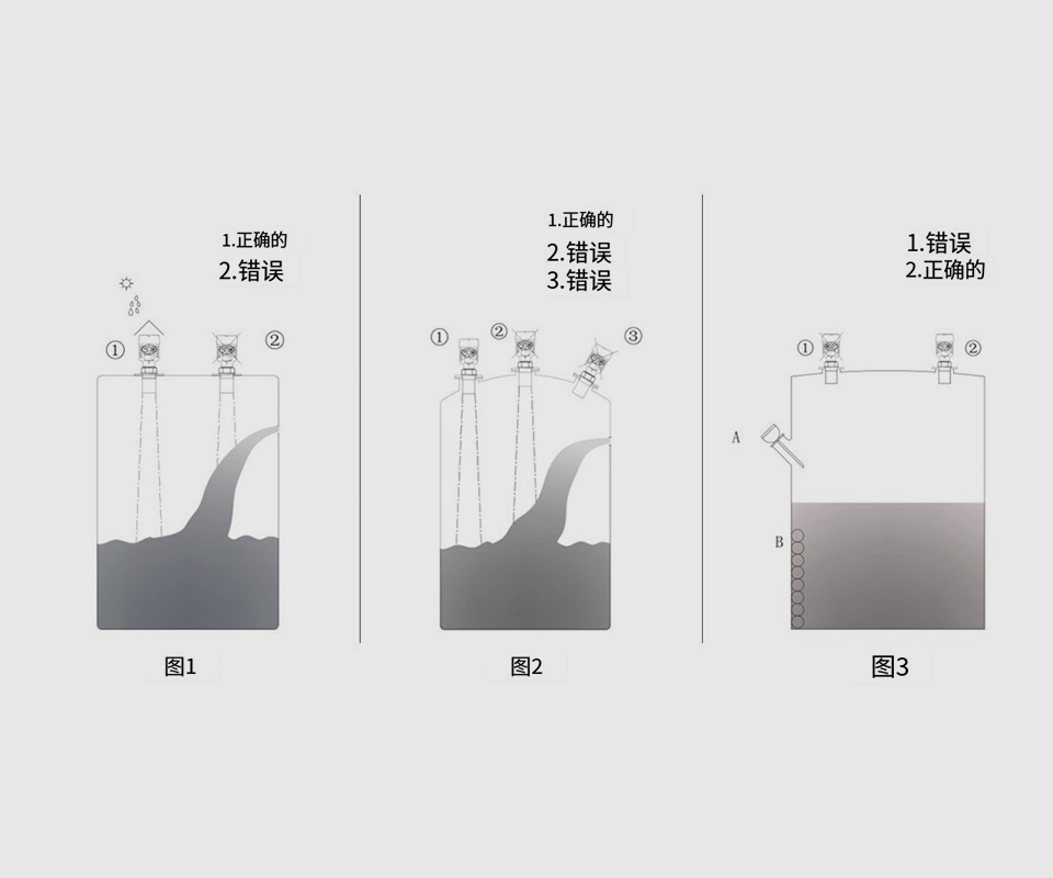 超聲波物位計在發(fā)射超聲波脈沖時,不能同時檢測反射回波。由于發(fā)射的超聲波脈沖具有一定的時間寬度,同時發(fā)射完超聲波后傳感器還有余振,期間不能檢測反射回波,因此從探頭表面向下開始的一小段距離無法正常檢測,這段距離稱為盲區(qū)。被測的高物位如進(jìn)入盲區(qū),儀表將不能正確檢測,會出現(xiàn)誤差。如有需要,可以將物位計加高安裝。